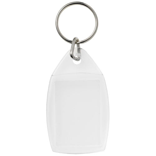 Clear nøkkelkjede med nøkkelring i metall. Metalløkkeringen har en flat profil, noe som gjør den ideell for utsendelse. Utskriftsdimensjoner for innlegg: 3,5 cm x 2,4 cm.