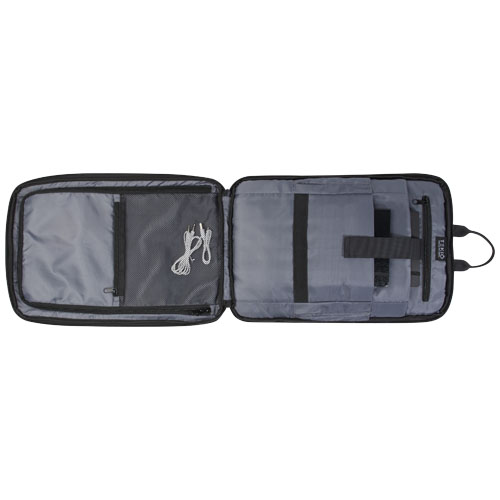 Rise-ryggsekken er laget av slitesterk 900D GRS resirkulert polyester og dekker alle nødvendige funksjoner. Den har en polstret laptopmappe som passer for en 15,6" laptop, en ekstra lomme for en liten bærbar PC eller nettbrett, og lommer med glidelås for mindre gjenstander. I tillegg har den en elastisk stropp på innsiden for plassering av vannflasker. Baksiden av ryggsekken har en praktisk elastisk stropp, noe som gjør den enkel å feste til en tralle.
