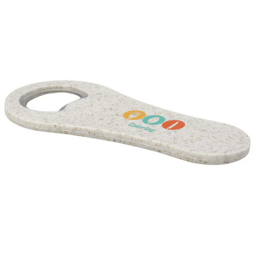Flaskeåpner laget av hvetehalm for åpning av flasker med øl, brus osv. Hvetehalm er stengelen som er til overs etter at hvetekornene er høstet, noe som reduserer mengden plast som brukes.