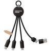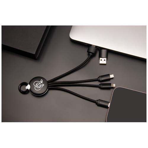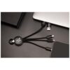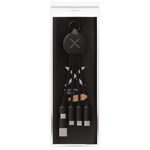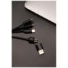 5-i-1 ladekabel med 3 kontakter (Type-C, Android, iPhone) og rPET ledninger (laget av resirkulerte plastflasker). Takket være dens doble USB-A og USB-C utgang, er kabelen 100 % kompatibel med de nyeste datamaskinene på markedet (USB-C). Finish i metallook på endestykkene. Kabelen kan lade opptil 3 enheter samtidig. Leveres i et resirkulerbart hylster og et resirkulert papirkort.