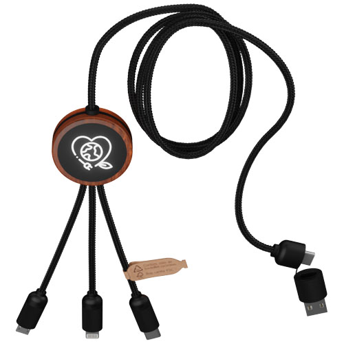 SCX.design C37 5-i-1 rPET ladekabel med lysende logo, rund form i tre