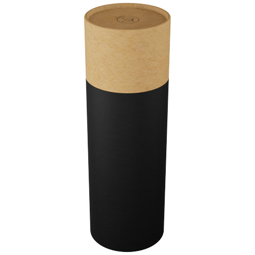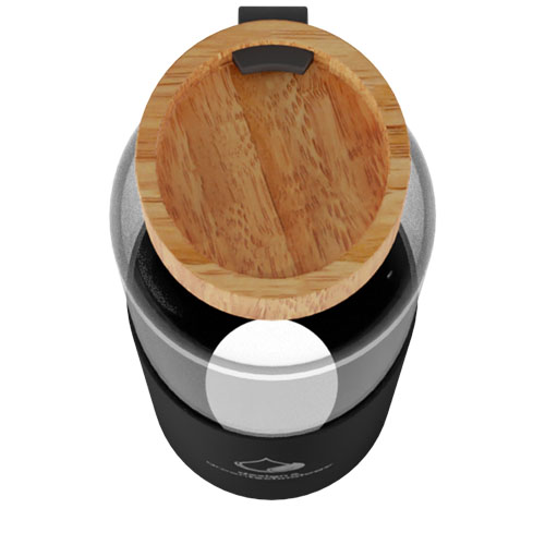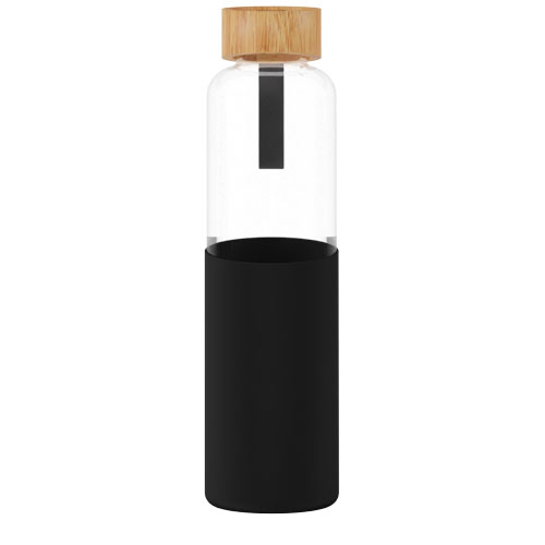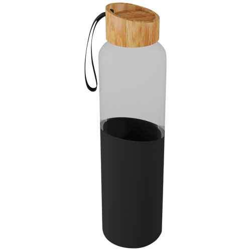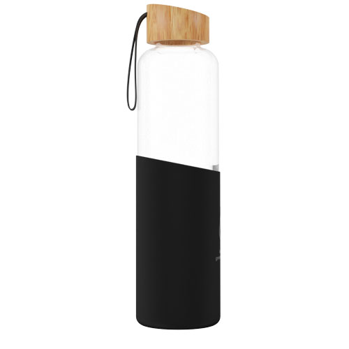 Borosilikat glassflaske med bambuslokk. Leveres med hylse og stropp laget av resirkulert silikon. Flasken (24,8 x 6,8 cm) er laget av 100 % holdbart borosilikat glass som bevarer drikkens friskhet, både varm og kald. Den inneholder ingen skadelige kjemikalier. Testet og godkjent i henhold til tysk lovgivning for matsikkerhet (LFGB), og testet for ftalater i henhold til REACH-forskrifter. Den resirkulerte silikonhylsen (13,5 x 7 cm) gjør flasken behagelig å holde i. Ved å fjerne bambuslokket og silikonhylsen kan flasken vaskes i oppvaskmaskin. Leveres i gaveeske av resirkulert papp (8,6 x 26,8 cm). Kapasitet: 550 ml. Inkluderer 3 års garanti.