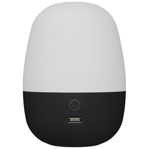Liten bærbar lampe med lysende logo som passer både til skrivebordet og uteplassen. Med sitt 1 400 mAh batteri kan lampen lyse i 6 til 10 timer og generere 100 lumen. Lysintensiteten kan justeres ved hjelp av en berøringsknapp på toppen av lampen. Lampen er IPX44-klassifisert og tåler både regn og fuktighet, noe som gjør at den passer godt til utendørs bruk. Lampens størrelse: 12 x 12 x 16 cm. Leveres i en svart gaveeske med magnetisk lukking (12,5 x 10 x 9 cm). Inkluderer 3 års garanti.