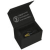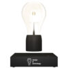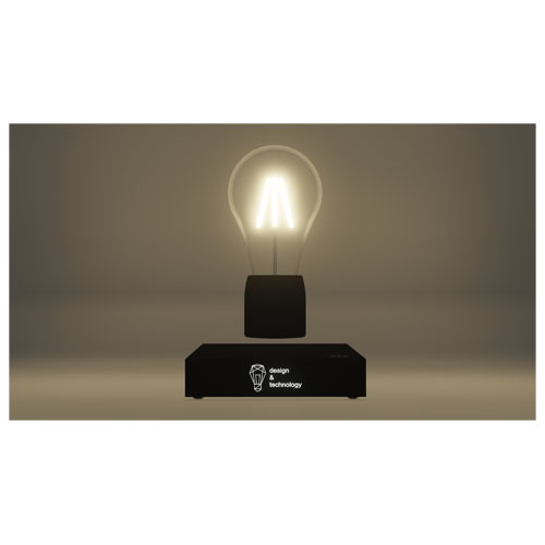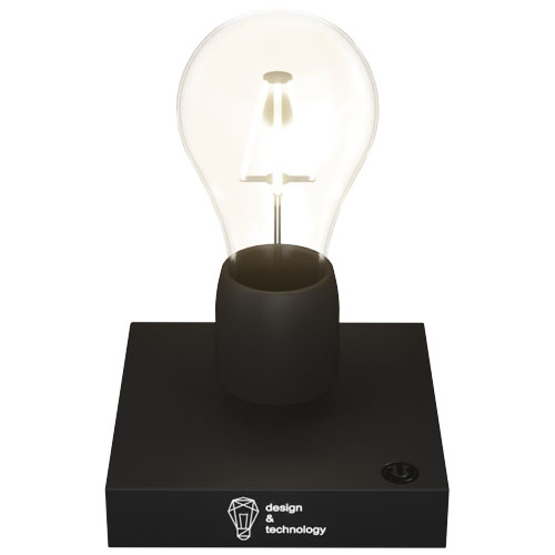 Stilig svevelampe som ser bra ut på alle skrivebord. Lampen kommer med en myk gummibase med en lysende logo som egentilpasses. Den kraftige magneten hever og holder pæren svevende over basen. Pæren styres med en berøringsknapp på undersiden av lampen. Maksimal effekt: 130 lumen. Lampens størrelse er 12 x 12 x 16 cm, og den er pakket i en svart gaveeske med magnetisk lukking (18,5 x 13 x 13 cm). Inkluderer 3 års garanti.