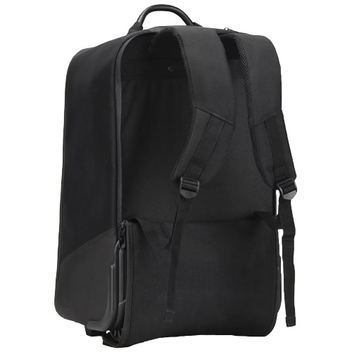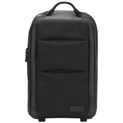 PC sekk med hjul (55 x 34 x 22 cm) laget av resirkulert PET (tilsvarende 31 resirkulerte flasker) i 1680D vanntett stoff. Beskytter alt innholdet i sekken takket være sin stødige struktur og polstrede bunn. Har et polstret rom for laptop eller nettbrett, metallhåndtak og powerbank som kan tas ut, for eksempel under sikkerhetskontrollen på flyplassen. Utstyrt med en RFID-sikker lomme og en hengelås som holder innholdet trygt. En lomme på baksiden gjør det mulig å bytte fra å bruke rullevesken som ryggsekk. Utstyrt med en 10 000 mAh hurtigladende powerbank og en lysende rPET ladekabel. Med denne kabelen kan powerbanken lades direkte med USB/Android kontakten utenfor sekken (uten å fjerne powerbanken). Det er mulig å trykke tekst eller logo på frontplaten, samt på den ene siden av 3-i-1 rPET-kabelen. Leveres med oppbevaringsveske.