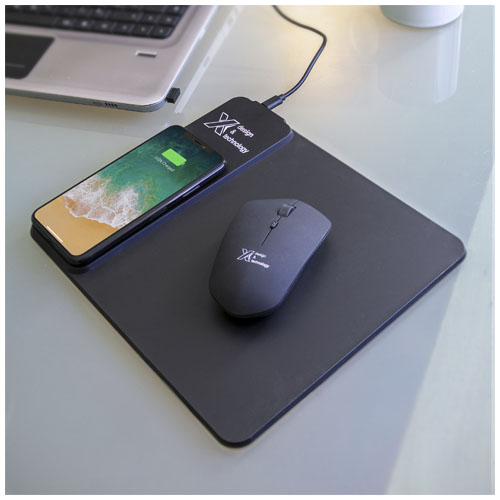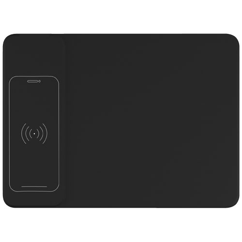 10W musematte med trådløs lading og lysende logo. USB-inngang/-utgang: 5V-2A. 1 meters USB-kabel er inkludert. Emballasjen er laget av resirkulert papir.