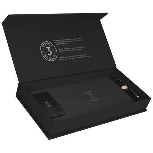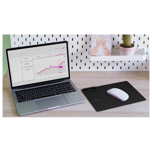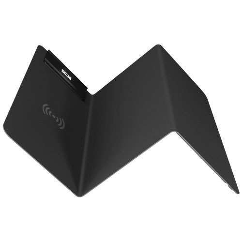 Sammenleggbar musematte med lysende logo med et 10 W trådløst ladeområde, laget av resirkulert PET- og ABS-gummi. Musematten er kompatibel med QI-lading, og er lett og enkel å transportere takket være den sammenleggbare funksjonen. Overflaten er belagt og behagelig å bruke med alle typer datamus. Musematten har flere magneter som muliggjør rask og intuitiv sammenbretting, og det er også mulig å brette musematten for å lage en støtte for mobiltelefonen. Den trykte logoen lyser når produktet er slått på. Leveres med en ladekabel laget av resirkulert PET. Pakket i en sort gaveeske (27,5 x 12,5 x 2,5 cm) med magnetisk lukking. Størrelse sammenbrettet: 22 x 9,5 x 1,4 cm. Størrelse utbrettet: 22 x 30 x 0,4 cm. Inkluderer 3 års garanti.