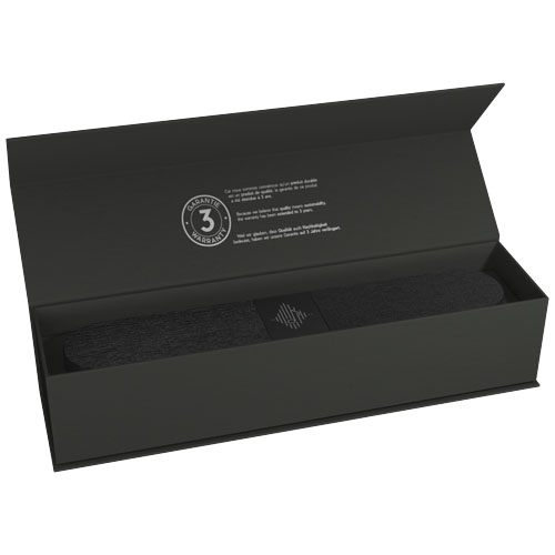 Lydplanke med lysende logo med 2x 10 W strøm og antibakteriell behandling på overflaten. Lydens høye kvalitet og styrke gjør den egnet for hjemmekinobruk, og den kan kobles til via Bluetooth® eller HDMI (HDMI-kabel ikke inkludert). Innebygd mikrofonfunksjon for konferansesamtaler. Leveres med en ladekabel laget av resirkulert PET. Lydplankens størrelse: 42 x 7,2 x 5,4 cm. Pakket i en gaveeske (41 x 9,5 x 6,7 cm) med magnetisk lukking. Inkluderer 3 års garanti.
