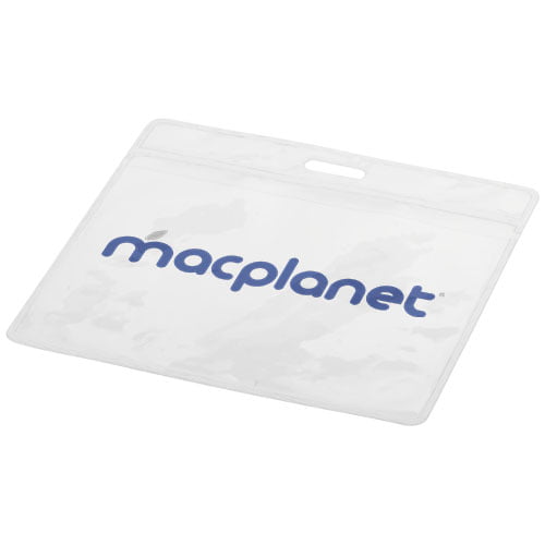Kortholder med innstikk på baksiden og åpning på toppen for feste på nøkkelbånd eller lignende. Mål 8,8 x 10,0 cm. Passer til kort i str. 9,4 x 6,7 cm.