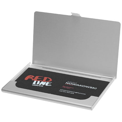 Visittkortholder i aluminium. Oppbevarer cirka 10 visittkort.