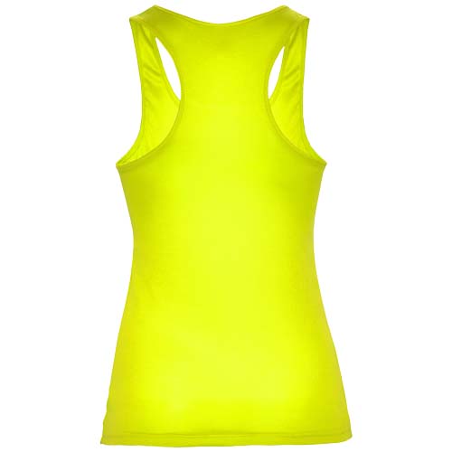 Teknisk, pustende, lettvasket materiale som tørker lett. Kantbånd på ermhull og halskant. Racerrygg og sidesømmer. Avtakbar etikett.