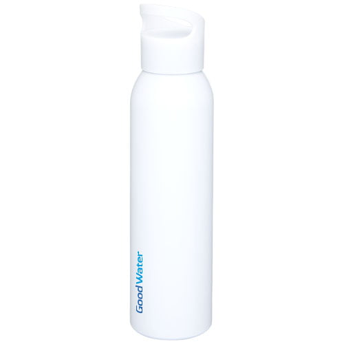 Den iøynefallende Sky sportsflasken er laget av aluminium, et lett og holdbart materiale. Skrulokket sørger for jevn åpning og lukking, og det innebyggde håndtaket gjør flasken enkel å bære. Vannflasken er enkeltvegget og rommer opptil 650 ml. Sky flasken passer i sidelommen på de fleste ryggsekker og de fleste koppholdere til biler.