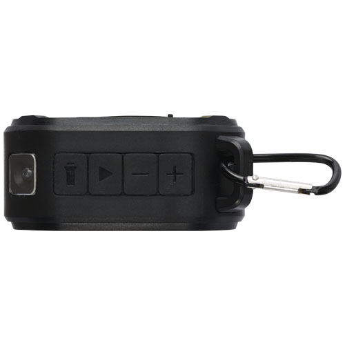 Solo 3 W IPX5 solcelle Bluetooth® høyttaler av RCS resirkulert plast med karabinkrok