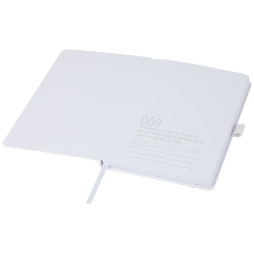 Thalaaso notatboken har et omslag som er produsert av havbundet plast som har blitt samlet inn fra kystområder. Dette gjør denne notatboken til et mer bærekraftig valg siden den bidrar til å redusere plastavfall. Med 80 linjerte ark med 80 g/m2 resirkulert papir, pennesløyfe, elastisk lukking, båndmarkør og trekkspillomme.