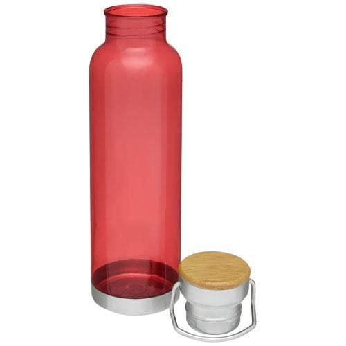 Enkeltvegget sportsflaske i holdbart Tritan™ materiale. Knuse-, flekk- og luktbestandig. Har et skrulokk med bambustopp, samt et håndtak for enkel bæring. BPA fri. Volum 800 ml. Leveres i gaveeske.