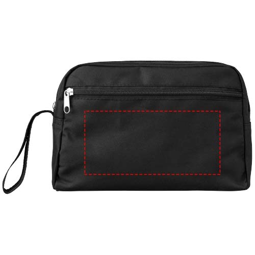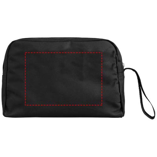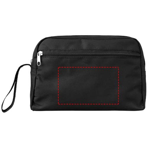 Den kjekke toalettvesken Transit har et enkelt design og er derfor ideell for reiser. Store produkter som sjampo og parfyme passer inn i hovedrommet med glidelås, mens glidelåslukkingen foran oppbevarer små gjenstander som speil eller tannpirkere. Toalettvesken er laget av 300D polyester, er lett og enkel å vedlikeholde. I tillegg har Transit toalettmappe flere dekorasjonssalternativer for logoer og andre budskap.