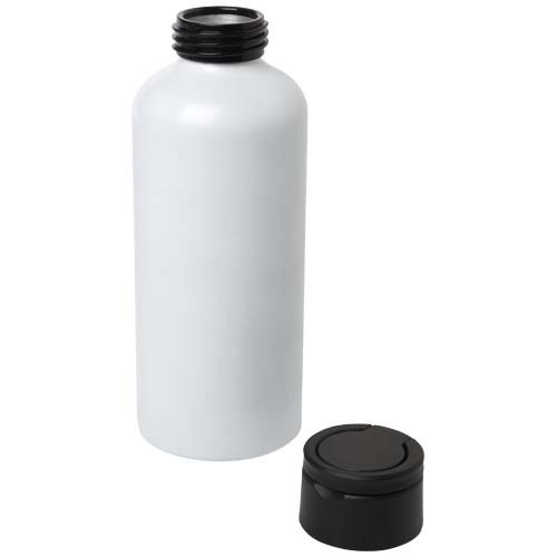 RCS sertifisert vannflaske i resirkulert aluminium med et slankt design. Har et resirkulert plastlokk som har en diskret bæreløkke. Lett og enkel å bære. Volumkapasitet: 600 ml.
