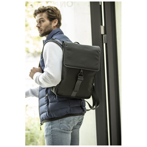 Turner ryggsekken er utformet av svært holdbare og bærekraftige materialer. Utsiden er laget av 51 % GRS resirkulert PU plast mens foringen er laget av 100 % GRS resirkulert RPET. Ryggsekken har et eget polstret 15,6" laptoprom, et bånd på innsiden for å oppbevare en vannflaske og en glidelåslomme for mindre gjenstander. Hovedrommet kan åpnes og lukkes med låsespennen. Denne ryggsekken er laget for å vare. Med sitt klassiske design og solide materialer blir den en favoritt.