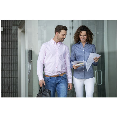 Vaillant oxfordskjorte med lange ermer for menn – en tidløs stil med eksepsjonell kvalitet. Den klassiske oxfordvevingen er laget av bomull av høy kvalitet og gir skjorten en raffinert tekstur som gir dybde og karakter til helhetsinntrykket. Skjortens button-down-krage gjør det enkelt å gå fra formelle til uformelle anledninger. Det andre knapphullet nedenfra er prydet med en iøynefallende oransje søm som gir skjorten et elegant preg.