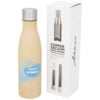 Hold drikket varmt i 12 timer eller kaldt i 48 timer med Vasa vakuumisolert kobberflaske. Doble vegger laget av rustfritt stål, med vakuumisolasjon og kobberbelagt innervegg. Det betyr at drikket holdes kokvarmt eller iskaldt etter behov. Flasken har et naturlig tre-utseende. Uten BPA, testet og godkjent i henhold til tysk lovgivning for matsikkerhet (LFGB), testet for ftalat-innhold i henhold til REACH. Volumkapasitet: 500 ml. Leveres i gaveeske.