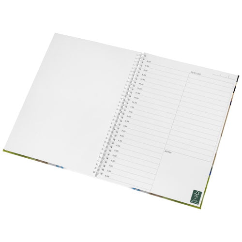 Inkluderer blankt papir på 80 ark (80 g/m2) og en svart eller hvit spiral. Tilgjengelig i 3 størrelser: A4, A5 og A6. Fullfargedekorasjon tilgjengelig på omslaget og på hvert ark, for- og bakside.