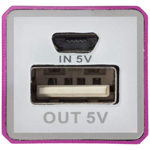 Powerbank WS101. Compact, rectangular shaped powerbank. By pressing the main button, an LED indicator will tell you the residual battery charge. Micro USB charging cable included. The lithium-ion battery can be recharged in 2 hours. Aluminium.